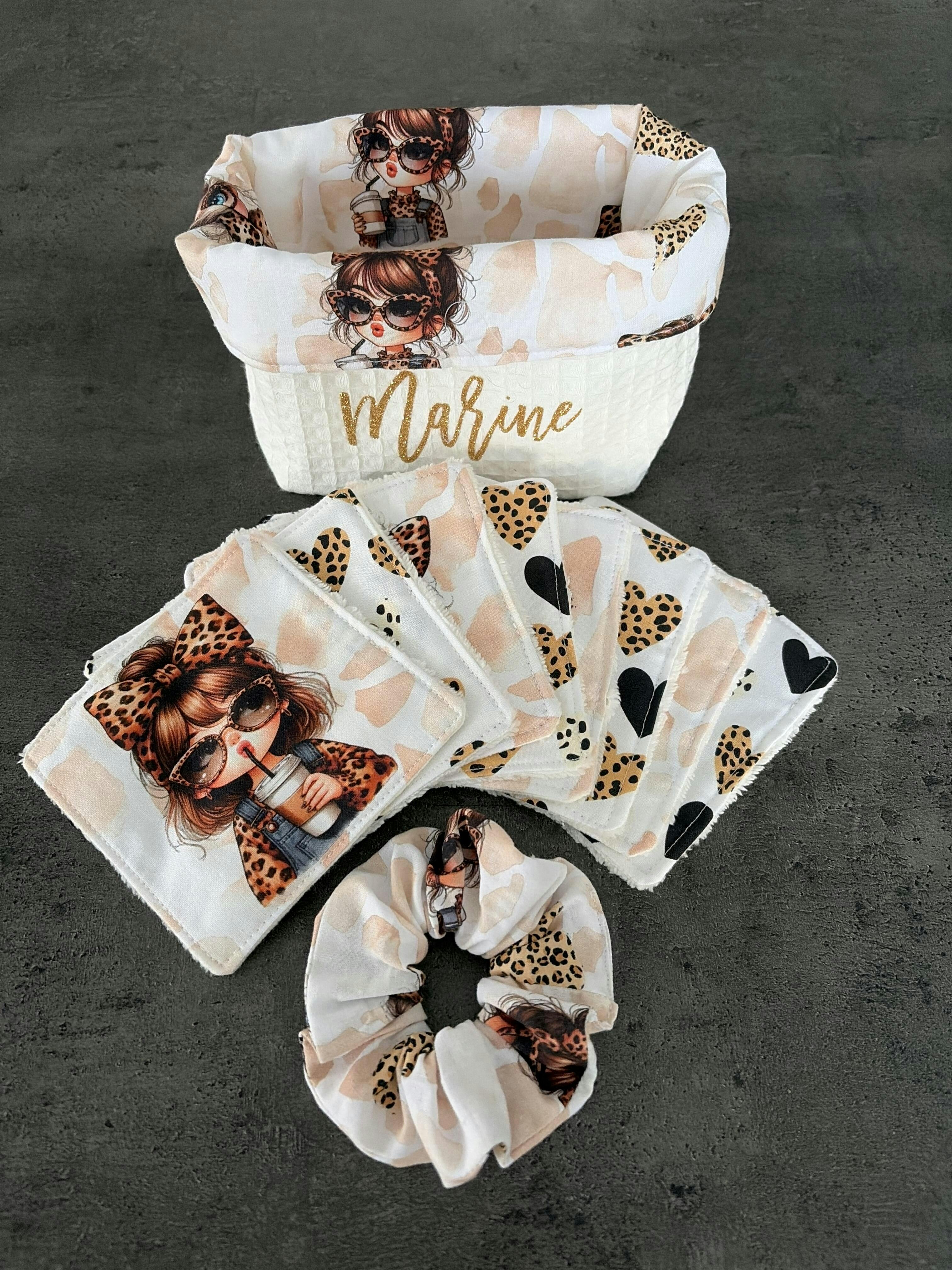 Panneaux coton 12/12cm (lot de 8) - Filles léopard