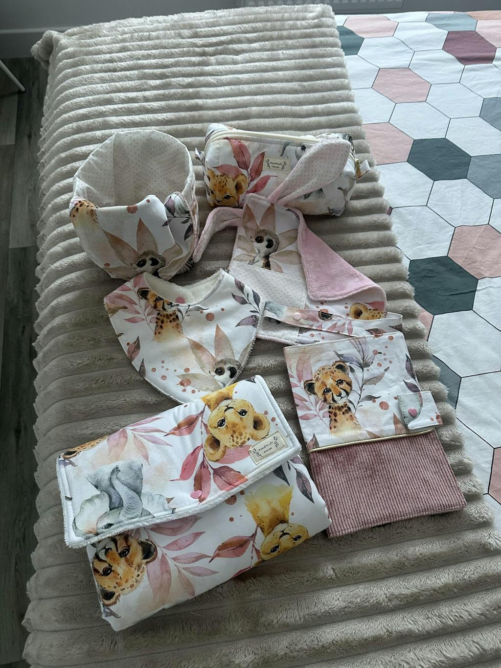 Tissu coton - Animaux jungle rose