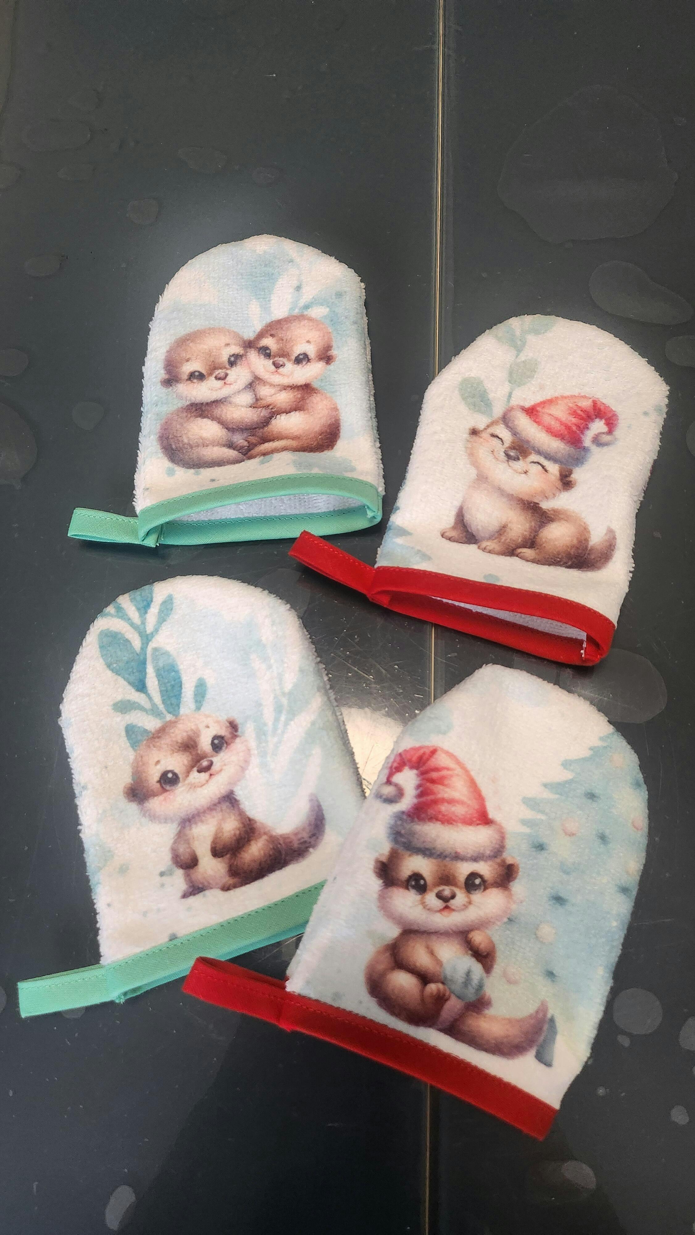 Panneaux éponge gants de toilette 0/5 ans (lot de 4) - Loutre Noël